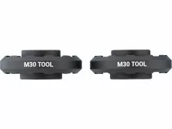 El set de herramientas para el pedalier M30 de Praxis Works es necesario para el montaje del pedalier M30 y M30 THRU. Incluye una llave de eje de pedalier para el lado de 30 mm y una para el lado de 28 mm. Ambas herramientas tienen una fijaci贸n de 3/8″ y se les ha dado un dise帽o antideslizante. No se pueden utilizar para la conversi贸n de rodamientos de Praxis Works.